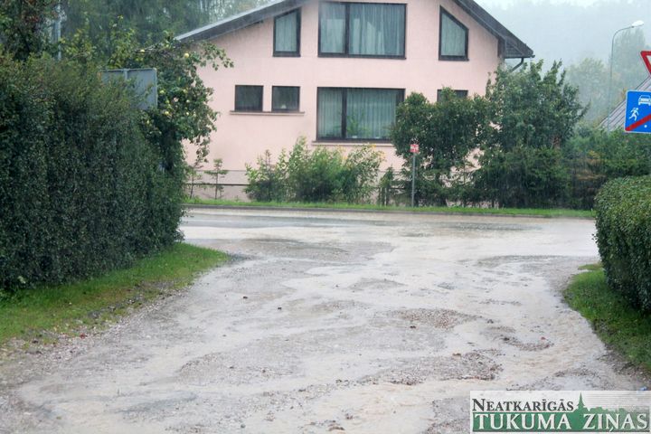 Lai arī daudzviet pilsētā ir ierīkota lietus ūdens savākšanas sistēma, tik masīvas lietus ūdens starumes tā nespēj savākt, tāpēc tās vietām pārpludināja arī kanalizāciju, par ko liecināja nelielas strūklakas no kanalizācijas alu vākiem Meža, Rīgas, Pauzera un citās ielās. Līdzīga situācija bija Kurzemes ielā pie Pavārkalna dīķa, kur ūdens līmenis bija sasniedzies augstu līmeni, tāpēc ne visi riskēja “laisties” cauri. Prāva peļķe bija izveidojusies stāvlaukumā aiz bērnudārziem «Taurenītis» un «Pepija» – tur bija sācis krāties ūdens no tā Smilšu ielas posma, kas ved uz Laubītes ielu.