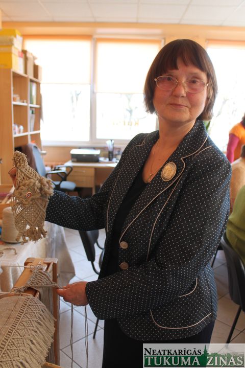 2. aprīlī Tukuma audēju darbnīcā notika mezglošanas nodarbība, kuras laikā audēja Maija Smilga ierādīja nedaudz aizmirstos mezglošanas pamatus. Viņa mezglošanu iemācījusies no savas vīramātes.