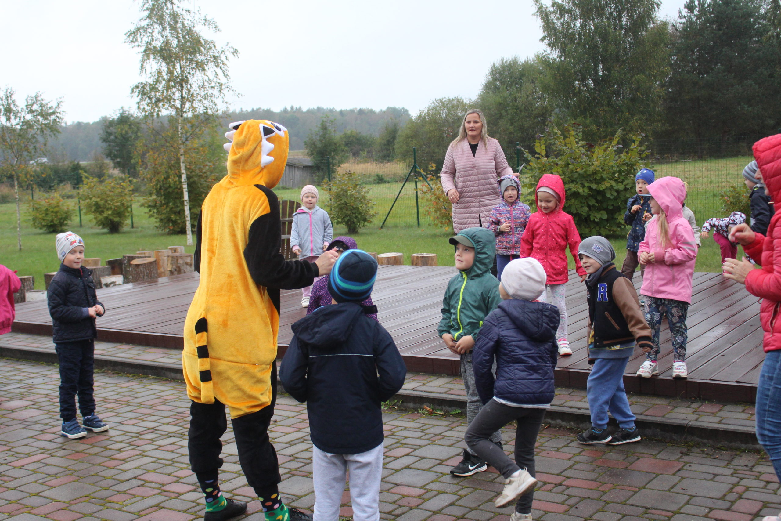 Svētkos, pēc iepriekš izstrādāta plāna ,katra grupa individuāli ciemojās pie lāča silā, peles kartupeļu laukā, zaķa burkānu dobē, kaķa peļu junkura – izpildot dažādas interesantas un jautras kustību rotaļas. Svētku noslēgumā katra bērnu grupa , no vecāku sanestām, dabas veltēm veidoja ceļu pa kuru pie mums nāks ciemos rudentiņš .Dzīvespriecīgais pasākums radīja pozitīvas emocijas un kustību prieku.
