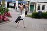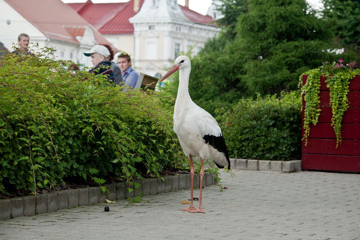 Taču šorīt stārķis pārcēlies uz Tukuma centru, Brīvības laukumu. Tas pastaigājas gar policiju, apstādījumiem, strūklaku. Putns izskatās labā kondīcijā, pašapzinīgi pastaigājas un pieņem dažādus tukumnieku cienastus. Neskatoties uz to, ka putns šķiet drošs, viņš ar cilvēkiem kontaktējas, uzturoties nelielā attālumā.