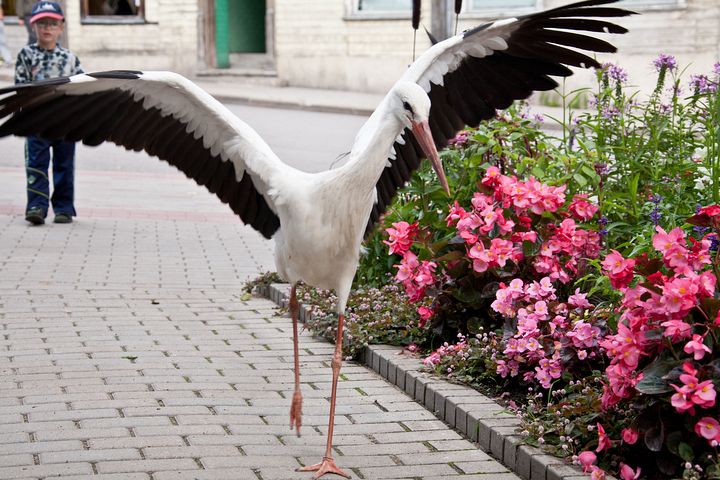 arī Laucienē vienā mierā pastaigājas stārķis pa pagalmiem. Neesmu redzējusi, ka kāds viņam pievērstu īpašu uzmanību. Dzīvo uz mājas jumta skursteņa. Garām ejot jāskatās, ka neuzmet kādu pļeku uz galvas. Citādi tāds pats īrnieks kā mēs. Garās kājas planē gar logiem. Tas ir pagājušā gada bērns un tepat izaudzis un pieradis pie mums, bet mēs pie viņa.