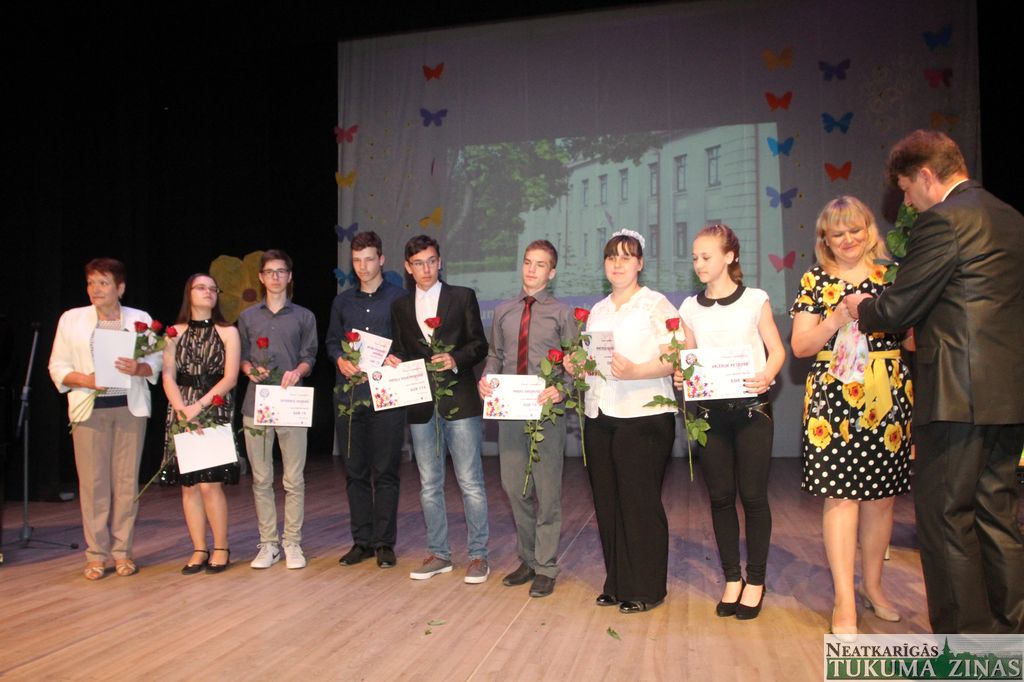 Tika apbalvoti Tukuma 2. vidusskolas skolēni: Paulīna Leimane, Artjoms Miņejevs, Eva Jūlija Lēnerte, Artūrs Agapovs, Paula Mihailova, Velards Valis, Megija Neilande, Milēna Agate Litvina, Viktorija Leimane, Linda Reinholde, Noreta Nordena, Jānis Rihards Klāks, Artūrs Oščepkovs, Kristers Misa, Anna Volberga, Sendija Andersone, Kārlis Šermuksītis, Anna Eleonora Freimane, Ričards Gudelis, Amanda Kipena, Armanda Grandberga, Līva Volberga, Līga Piņķe, Rainers Zimins; un viņu pedagogi: Sanita Birzniece, Sņežana Tišlere, Zita Štrausa, Evita Korna, Olga Antule, Skaidrīte Prancāne, Marita Trušina, Guntars Helvigs, Krista Zubova, Ingrīda Freimane, Vēsma Kaņepe, Inese Ķirķe.