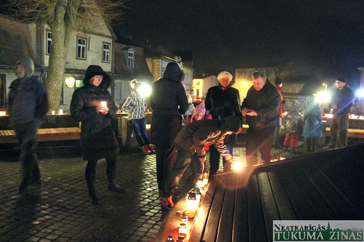 Vienlaikus svētku svinēšana norisinājās Brīvības laukumā, kur tika iedegtas simtiem svecīšu par godu un prieku Latvijai, savukārt 21.00, kad izskanēja kopīgi dziedātā himna, visus iepriecināja svētku salūts.