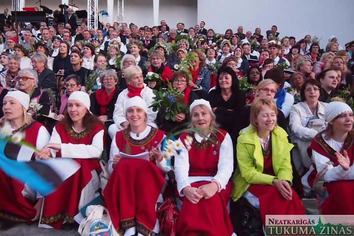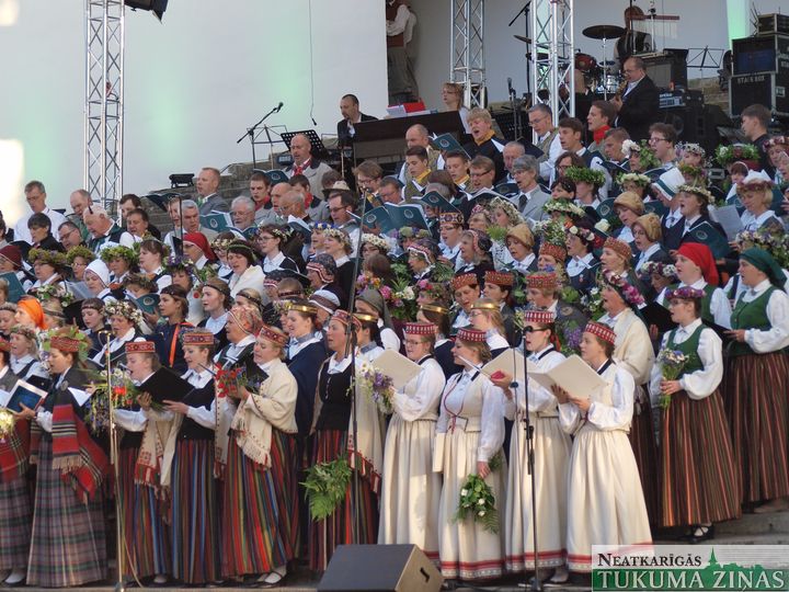 Sestdien, 27. jūnijā, VIII Ziemeļu un Baltijas valstu dziesmusvētku dižkoncertā Durbes estrādē pulcējās ap 900 koristu un 500 dejotāju