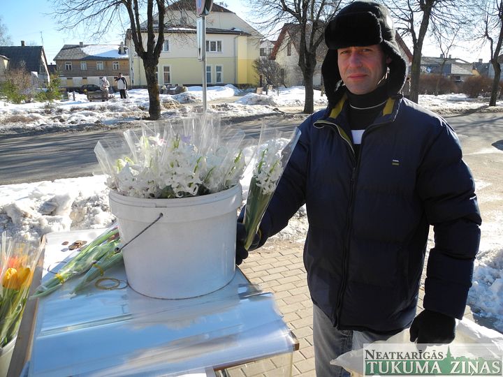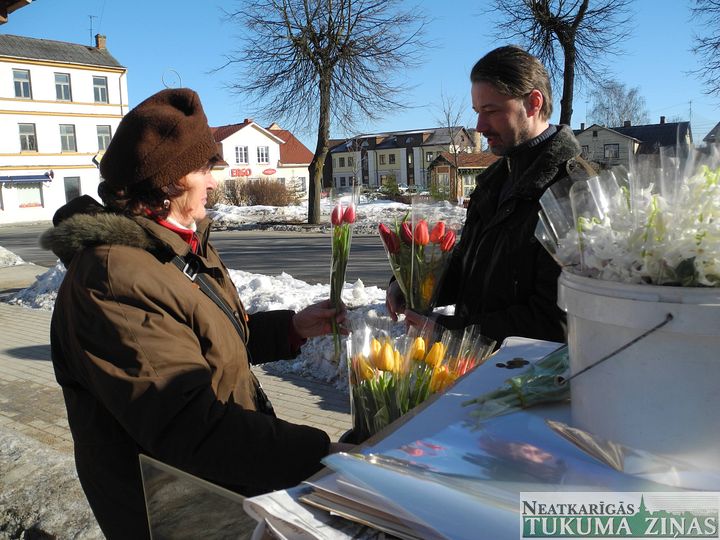 Šodien, 8. martā, arī Tukumā kungi rūpējas par savām sievietēm – ik uz soļa – ziedi, ziedi, ziedi…