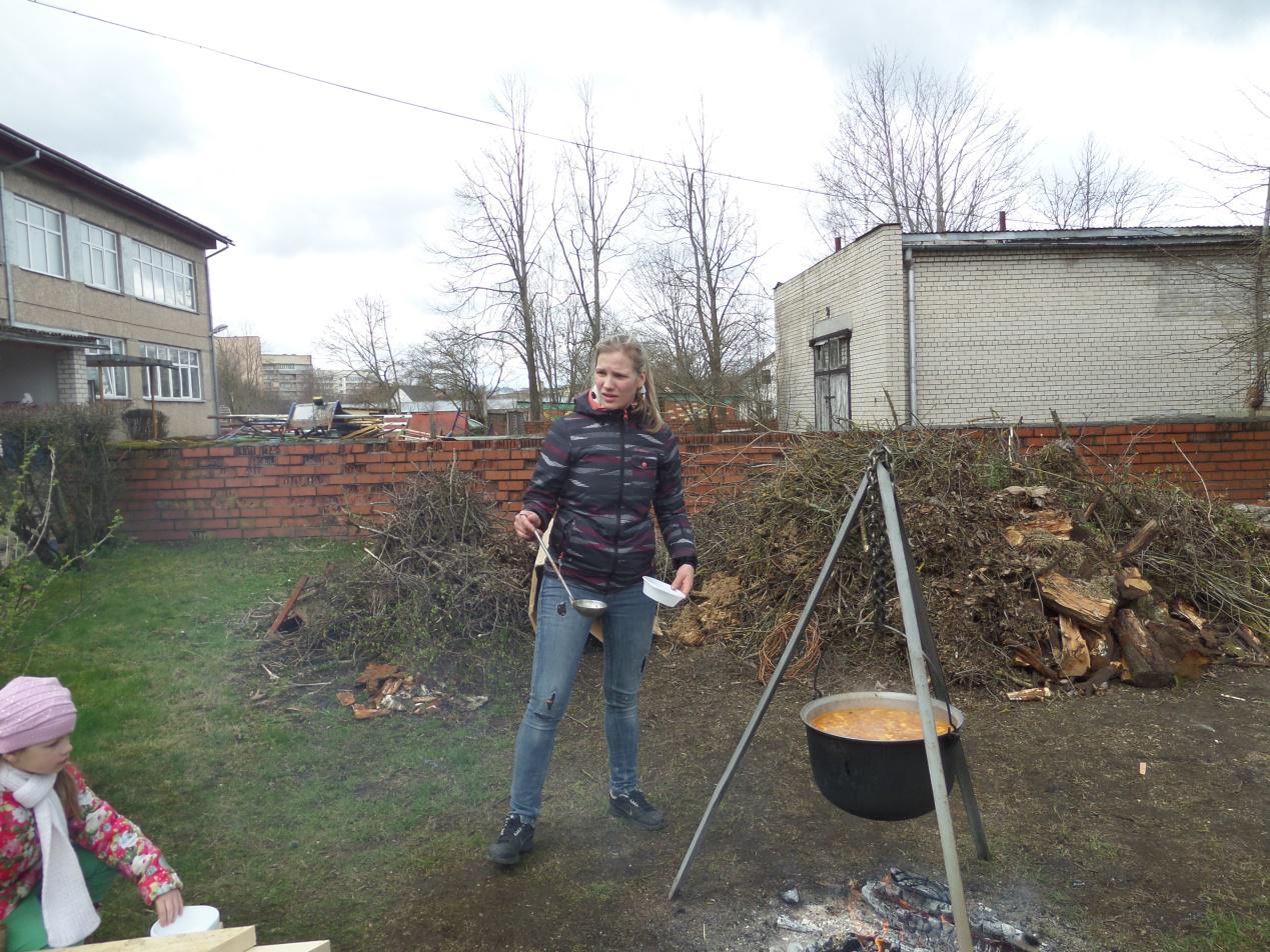 Izskatījās, ka gandarīts par paveikto bija ikviens – gan liels, gan mazs. Gandrīz kā tradīcija, talka noslēdzās ar kopīgām pusdienām, uz ugunskura gatavotu Talkas zupu, ceptām desiņām un tēju. Kopā jutāmies kā liela ģimene, kurai rūp savas mājas. Liels paldies visiem vecākiem, deju kolektīvam «Vidums» un Intaram Kleinhofam, iestādes čaklajiem darbiniekiem, Maijai Fogelei, Tukuma domes komunālajai nodaļai par atbalstu un piedalīšanos mūsu lielajā talkā!