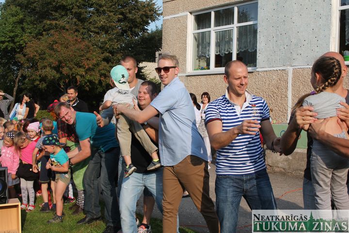 Šodien, 12. septembra pēcpusdienā, Tukuma bērnudārzā «Vālodzīte» tika aicināti ierasties tēti, vectētiņi, brāļi, arī mammas un omītes, kas iejutās atbalstītāju lomā, lai kopā ar bērniem atraktīvi un sportiski atzīmētu Tēvu dienu.