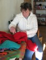Pa dienu patversmē uzturas cilvēki pieci – padara saimniecības darbus, ārda adījumus, griež aušanai lupatas, auž grīdas celiņus. Anita iztin un rāda trīs eleganti svītrainus un pamatīgi nostrādātus paklājus, kuru pelēkajā pamatā ieaustas krāsainas joslas… Skaisti! "Pārējie pa dienu vai nu strādā simtlatniekos, vai ko citu. Neko jau daudz nestāsta, es arī neprasu, bet gan jau kaut kādu darbiņu ir atraduši," viņa nosaka. Kad apvaicājos, kā patversmē ar satikšanu, Anita saka, ka tagad augšā esot ļoti laba kompānija. Labi satiekot, un visi strādīgi.