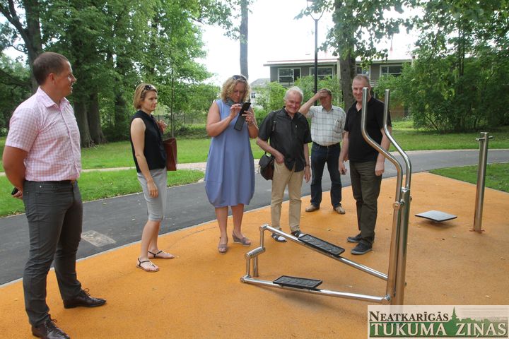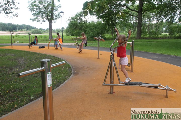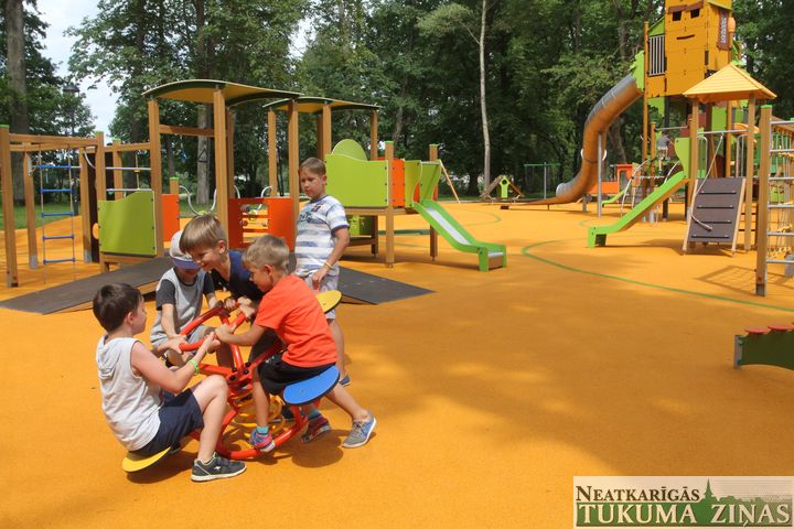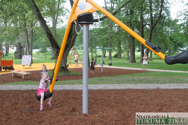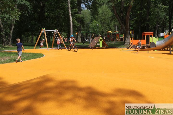 30. jūnijā Tukuma novada domes komisija un SIA «Strabag» pārstāvji kopīgi apskatīja pilsētas parkā ierīkoto rotaļlaukumu. Tā kā būvnieks nožogojumu jau bija noņēmis, laukums bija pilns bērnu.