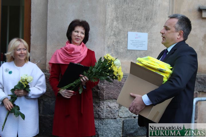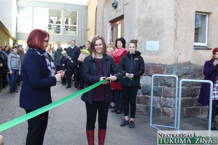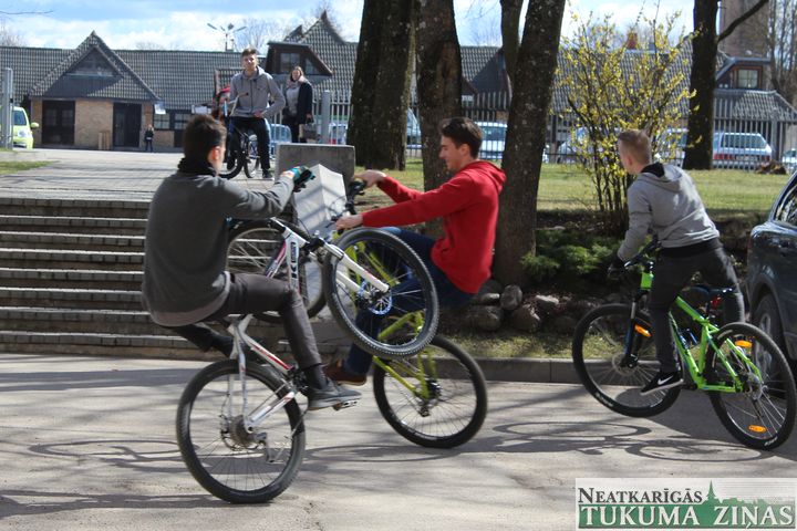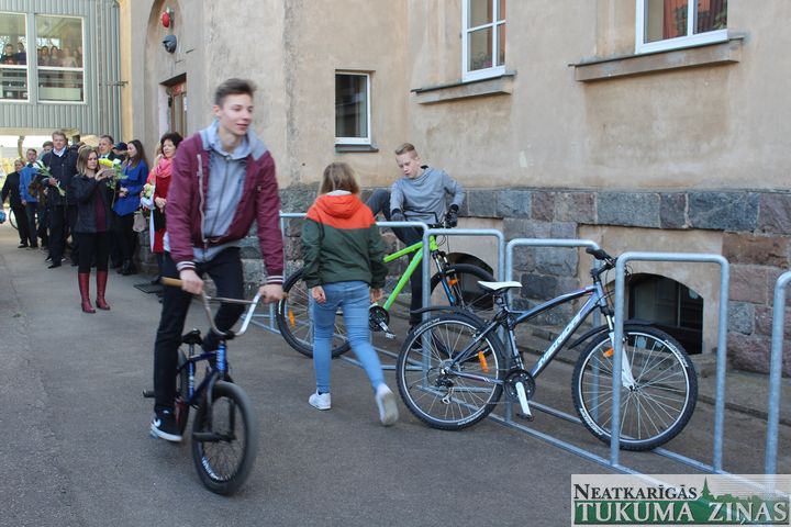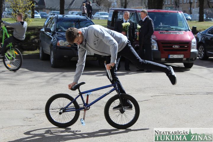 Skolas direktore kopā ar «Cemex» iespēju fonda vadītāju Mairitu Blūmu pārgrieza lentu un skolēni, kas bija ieradušies uz skolu ar velosipēdiem, tika aicināti tos novietot jaunajā novietnē. Pēc laba vēlējumiem CSDD Tukuma nodaļas vadītājs Armands Birznieks izsniedza 55 atstarojošās vestes 7. un 8. klases skolēniem. Nobeigumā Tukuma Raiņa ģimnāzijas 12. klases skolēni bija sagatavojuši priekšnesumu, demonstrēja dažādus trikus ar velosipēdiem