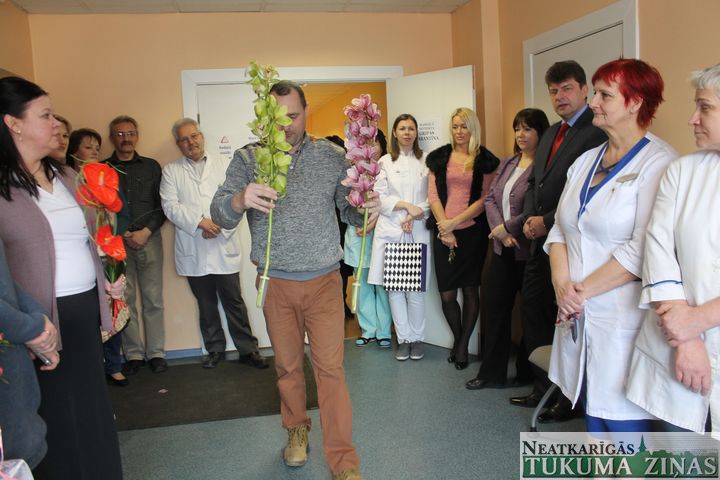 3. martā Tukuma slimnīcas Bērnu nodaļa svinēja svētkus un uzņēma viesus – kolēģus no citām nodaļām, kas bija atnākuši apskatīt nupat kā izremontētās palātas. Abas palātas un tualete starp tām ieguvusi pavasarīgi košu krāsojumu zaļganā, rožainā un gaiši violetā tonī.
