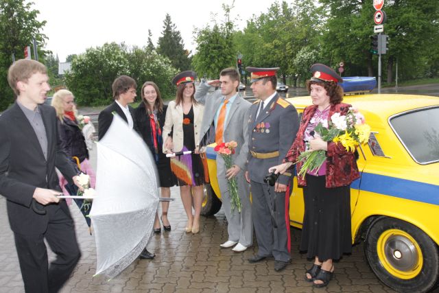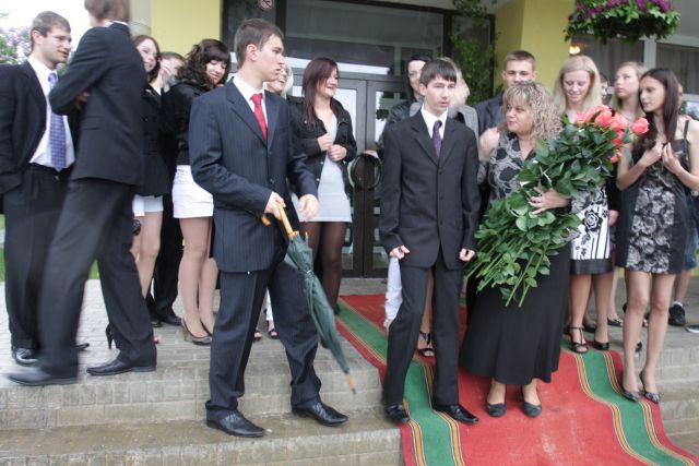 Šī gada vidusskolas beidzēji savas mīļskolotājas Evitu Kornu, Tamāru Pūpolu un Zitu Štrausu uz skolu atvizināja ar dzelzs rumakiem: melnā limuzīnā, milicijas volgā un vecā, sirmā žigulītī. Goda tepiķus vaļā ritināja. Sumināja labās skolotājas. Cipars, kas vēsta, cik šogad vidusskolas beidzēju, – 69. Skaitlis vijīgs no abiem galiem, griez, kā gribi. 12.a klases skolēni savēju skolotāju E. Kornu celtu teju padebešos, ja nebūtu mākoņu. Evitai šī ir otrā izlaiduma klase. Viņa smaida un teic: "Pēdējā tāpēc, ka tik labus bērnus vairs neatrast." Tā jau allaž skolotāji saka. Labs ar labu gadu kā cimds ar roku.