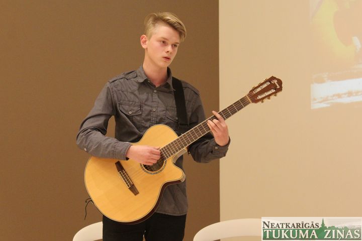 Dienas īpašo noskaņojumu papildināja Tukuma 2. pamatskolas 8. klases skolnieks Denijs Grieze, kurš izpildīja paša sacerētās dziesmas. Bet pēc oficiālās daļas tika griezta jubilejas kūka un atkal visi apsveicēji sauca: ”Rūgts!”