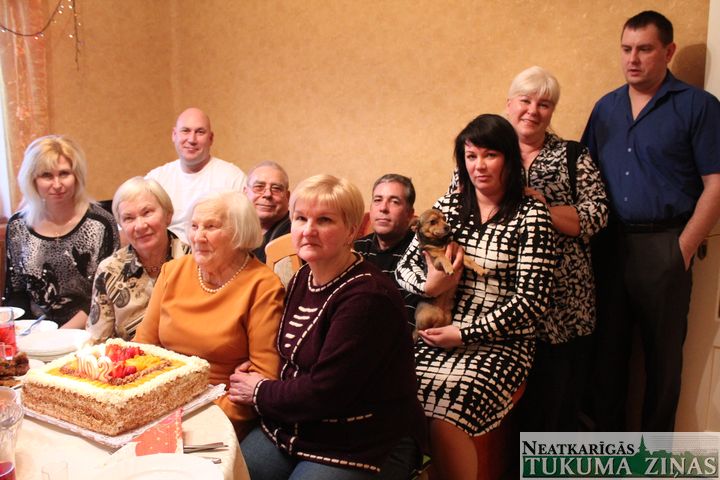 Par godu dzimšanas dienai jubilāre skaisti saposusies: “Man jau lielākais prieks, kad meitenēm patīk, ka es smuka. Viņas jau palīdzēja tā skaisti saģērbties un sapucēties, lai gan es teicu, ka gribu būt tāda, kāda esmu. Ja jau ir labi, tad ir labi. Jaunībā, jā, tad gan man patika pucēties, bet kuram jaunam nepatīk?! Jaunībā es izmācījos par frizieri, bet frizierim ir ļoti nervozs darbs. Septiņus gadus nostrādāju, taču mani nervi to neizturēja. Un tad jau arī sākās karš, un saimnieks teica: “Jaunkundz, es jums tulku nevaru turēt,” un man bija jāiet prom, jo man tās valodas ātri klāt nelec. Pēc tam atradu vietu Rīgas pilsētas bērnu namā. Un tur 26 gadus nolauzu. Bet, kad pirmoreiz mani pie tiem bērniem ieveda, nodomāju – nu varbūt mēnesi es izturēšu, bet divi būs noteikti par daudz. Man nebija tā, ka ļoti vilktu pie bērniem, bet, redz, kā iepatikās. Tur biju gan audzinātāja, gan sanitāre, vēlāk pie krieviem tās bija tādas pusmāsas, savukārt tos darbiniekus, kas karu bija izdzīvojuši, salika par māsām.”