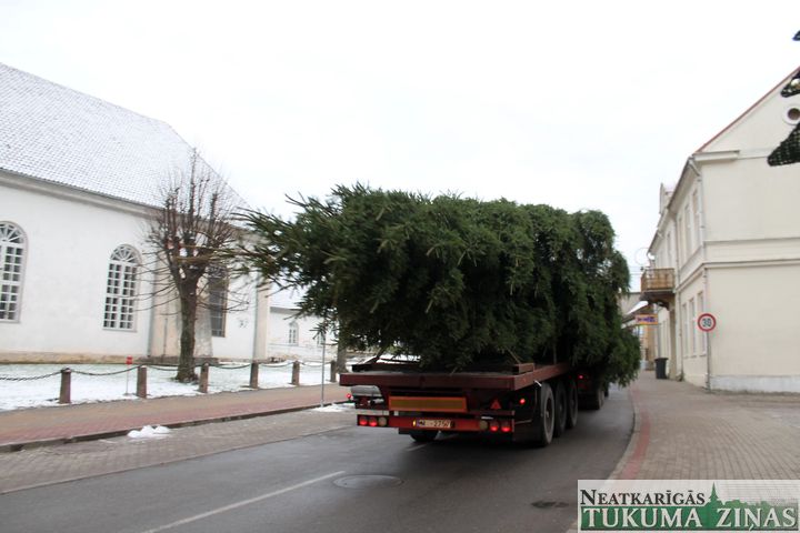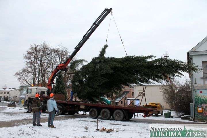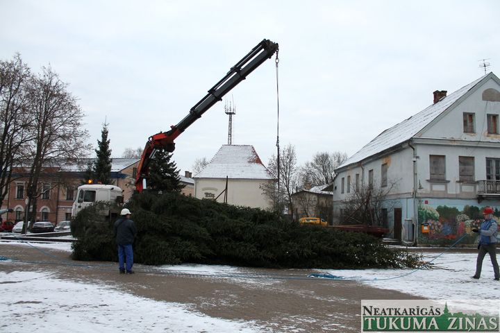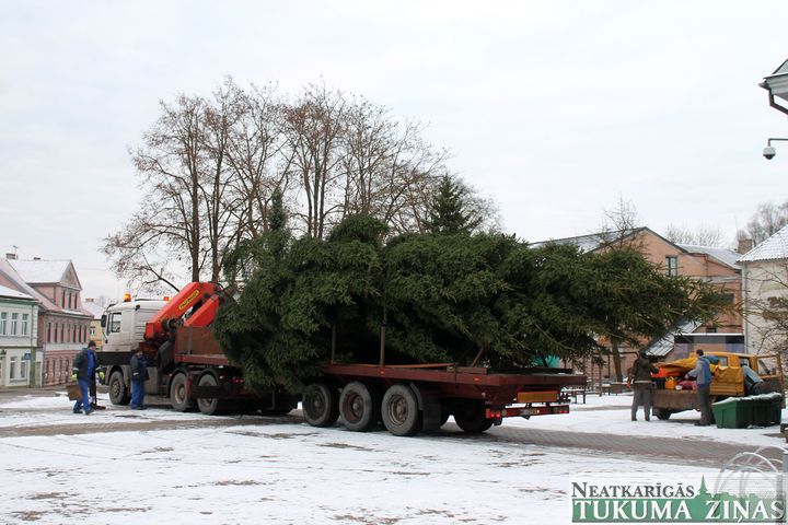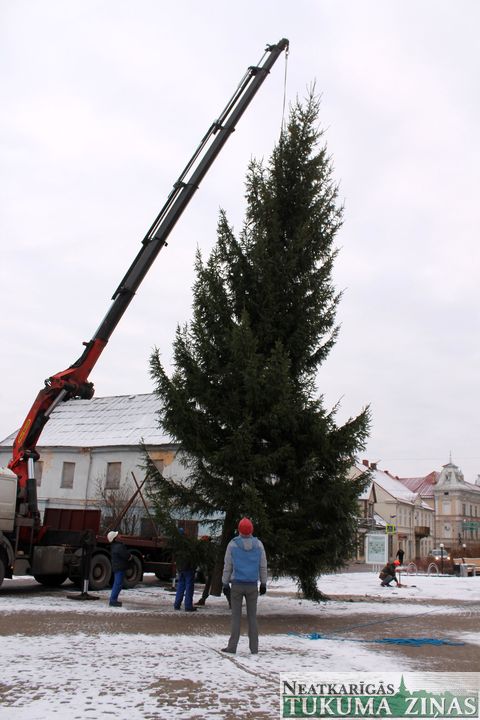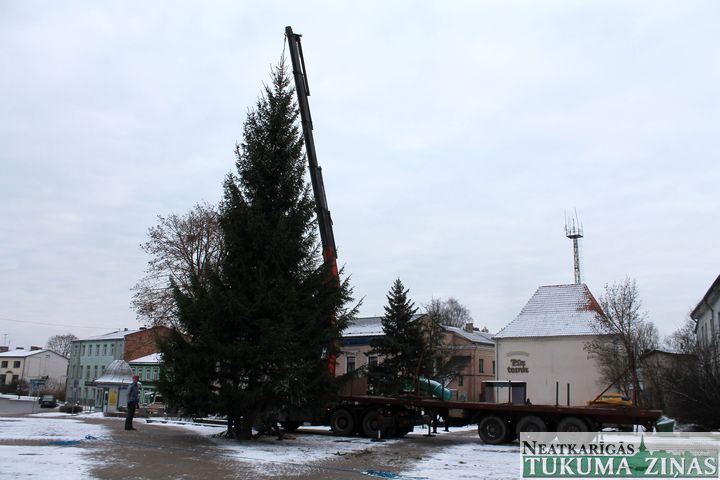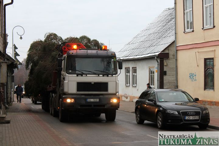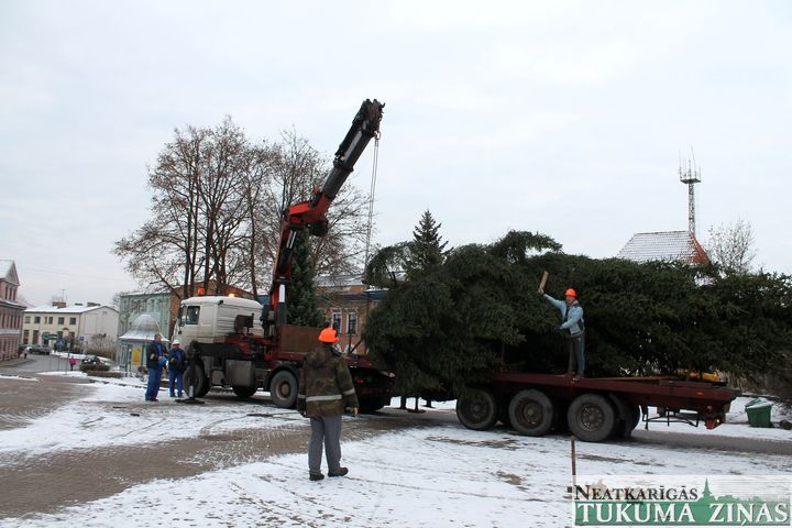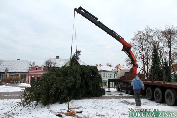No 25. novembra Tukuma Brīvības laukumu rotā lielā svētku egle. Jau rīta pusē smagā automašīna egli atveda no Tumes pagasta, no saimniekam Pāvelam Bogdanovam piederoša meža, kur tā noskatīta jau vasarā. 14,5 m garā egle būs skaista rota Tukumam gaidāmajos svētkus. Viskošākā tā kļūs svētdien, 29. novembrī, 16.00, kad tā tiks svinīgi iedegta.