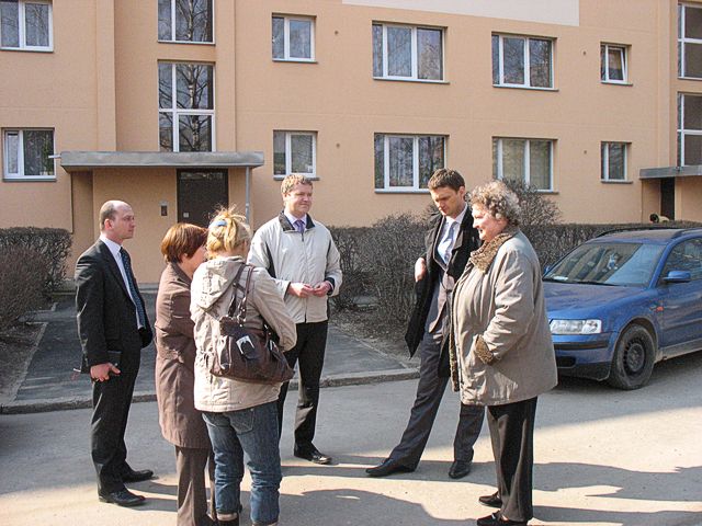 Lai pārliecinātos, kādu labumu iedzīvotājiem šie darbi jau devuši, otrdien, 13. aprīlī, kopā ar domes izpilddirektoru Māri Rudaus-Rudovski, SIA «Jauntukums» direktorēm Ludmilu Kenidru un Irinu Kanbergu devāmies apskatīt divas mājas Imantā, Kurzemes prospektā, kas renovētas 2008. gadā vēl bez Eiropas līdzfinansējuma, bet ar 20% valsts atbalstu. Sarunā piedalījās arī ekonomikas ministra padomnieks Klāvs Olšteins un SIA «bonus.lv» pārstāvis Ojārs Rencis.