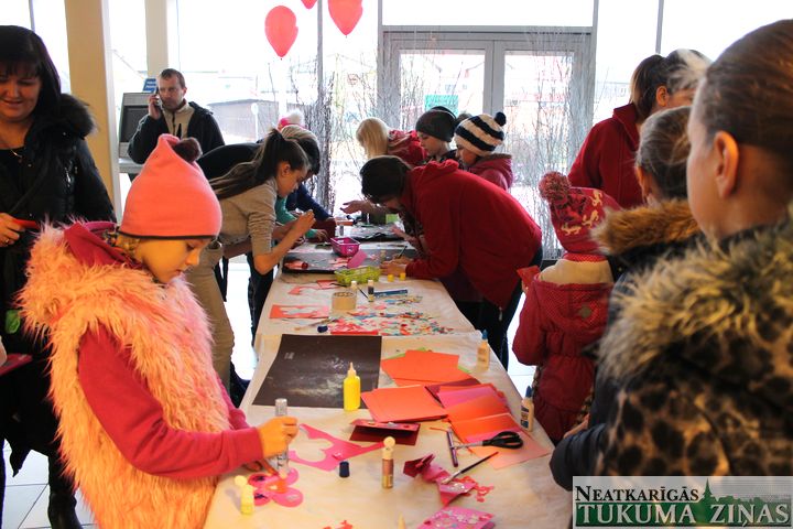 Ienākot Tukuma ledus halles foajē, ikviens varēja pagatavot Valentīna dienas kartiņu, ko vēlāk uzdāvināt kādam mīļam cilvēkam. Vēl bija iespēja foto stūrītī iemūžināt mīlestības dienas fotogrāfiju un panašķoties ar cepumiem. Turpat blakus darbojās Ieva Pētersone, kas pēc plaukstu locītavu līnijām spējot izzīlēt cilvēku nākotni. Lielākā jautrība norisinājās uz ledus publiskajā slidošanā, uz kuru 1ar atlaidi varēja doties arī tie, kas iepriekš bija darbojušies radošajā darbnīcā. Slidošanas beigās visi pasākuma dalībnieki vienojās zibakcijā, ar sarkanām sirsniņām rokās uz ledus izveidojot vienu lielu sirdi.