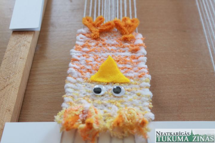 Satikt savu meistaru svētdien, 8. aprīlī, Tumes kultūras namā bija nākuši tie, kas vēlējās, piemēram, iemācīties izšūt krustdūrienā, ko ierādīja tumeniece Maruta Čauva, kuras darbu klāstā ne tikai izšūti, bet arī tamborēti rokdarbi. Kintija Kāle-Pūkaine ir aušanas lietpratēja un šoreiz maziem un lieliem rādīja, kā ar pavisam nelielām stellītēm, pagatavot pūcīti.