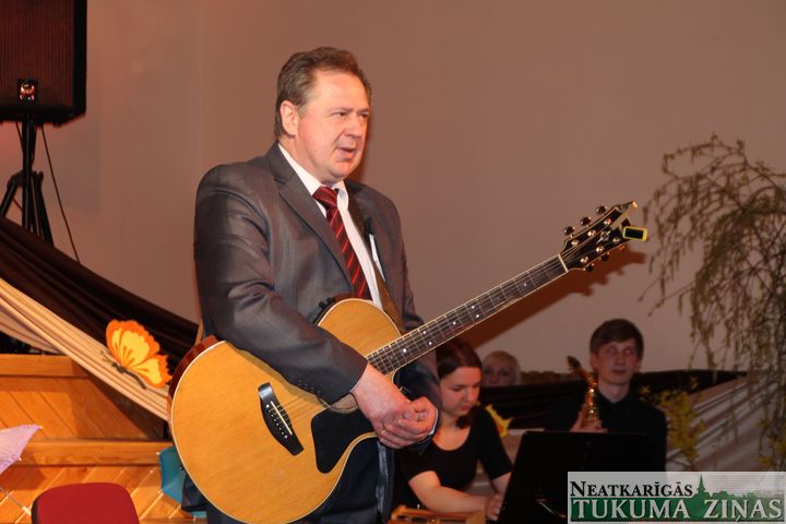 Lai sagatavotu gaidāmajam un iepazīstinātu ar viesmāksliniekiem, jubilejas koncerta viesi, ienākot Tumes kultūras namā, vispirms saņēma pasākuma programmiņas. Bet pat, ja kādam no tās bija izdevies kā nebūt izvairīties, nekas nebija nokavēts, jo katru priekšnesumu un izpildītāju pieteica Andis Ožets, kurš iejutās vakara vadītāja lomā, jau laikus paziņojot, ka koncerts būšot trīsdaļīgs.