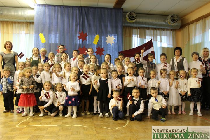 Daudzviet, īpaši skolās, Latvijas 99. proklamēšanas gadadiena tika svinēta jau šodien – 17. novembrī. Izņēmums nebija arī Slampes PII «Pienenīte», kur bērni bija sagatavojuši īpaši šai dienai veltītu svētku koncertu.